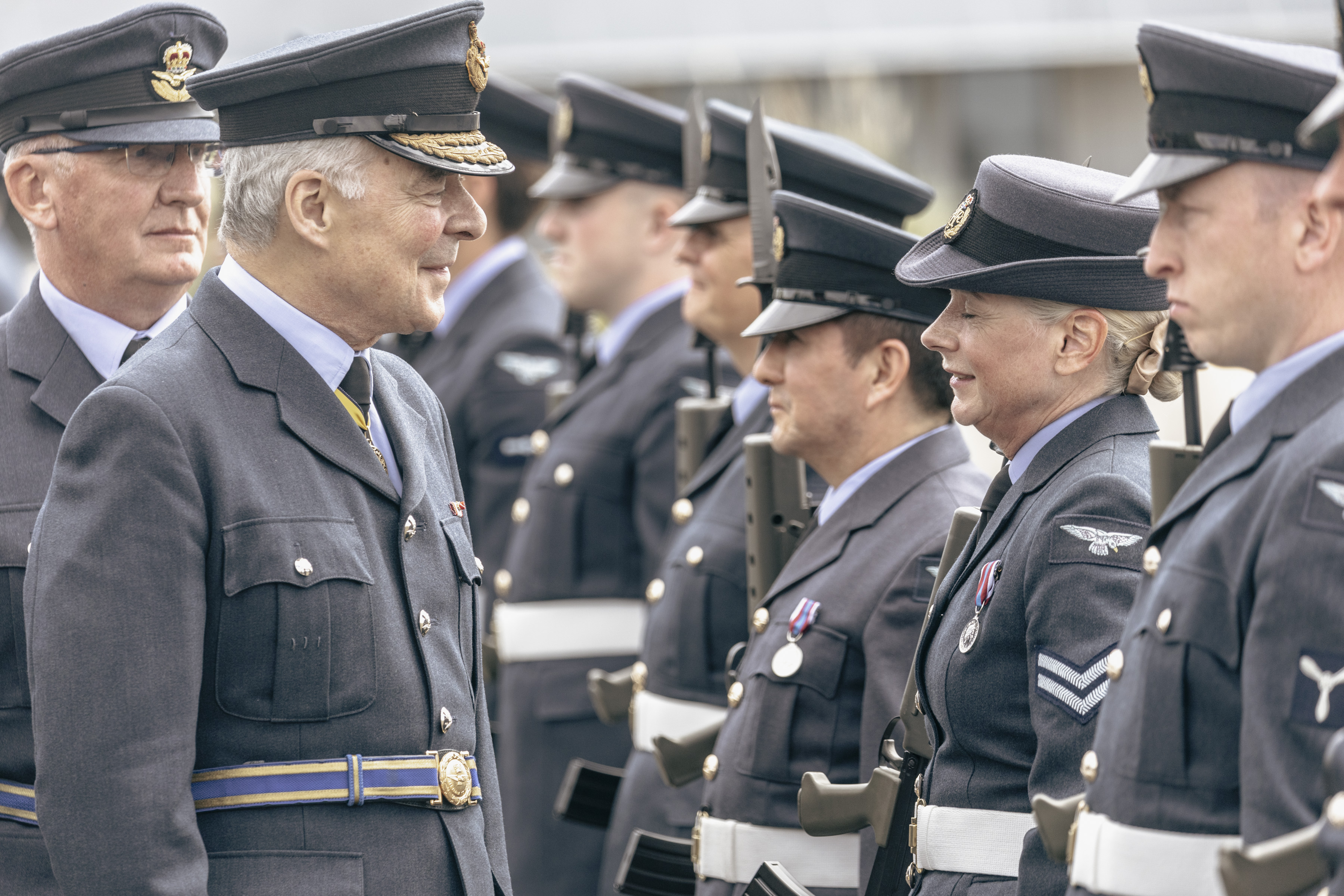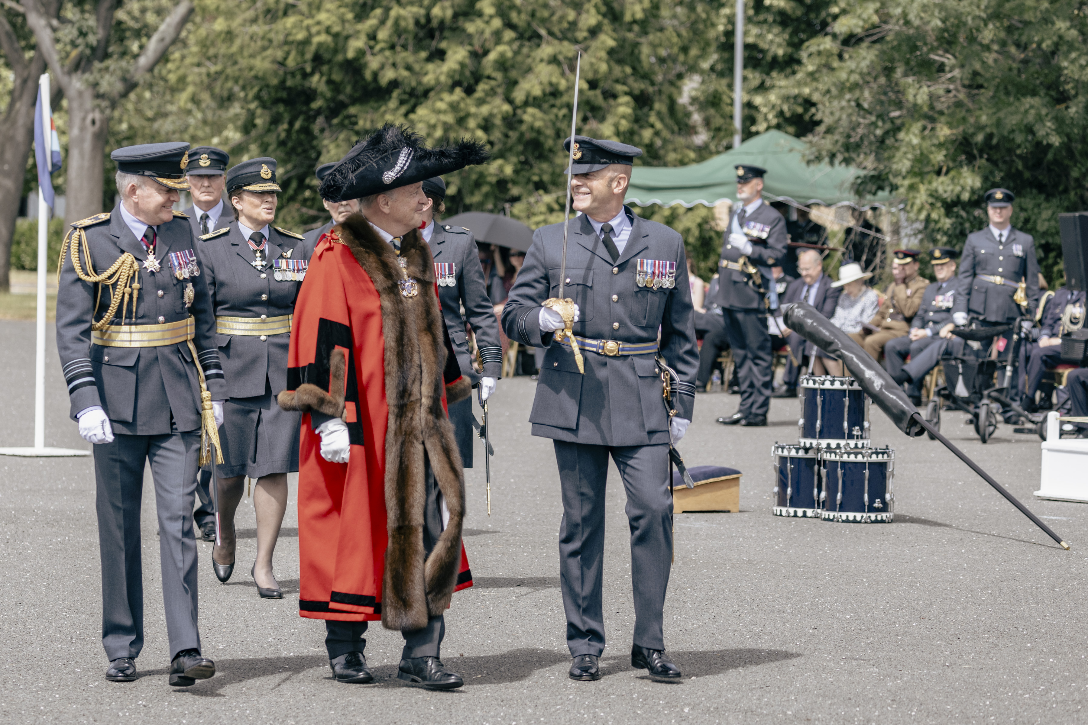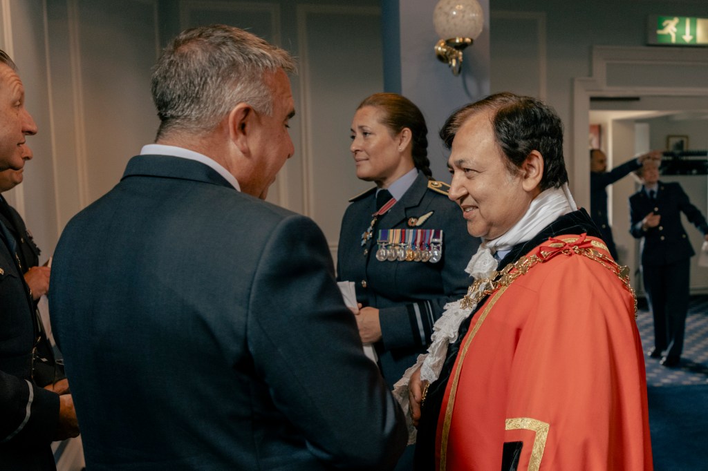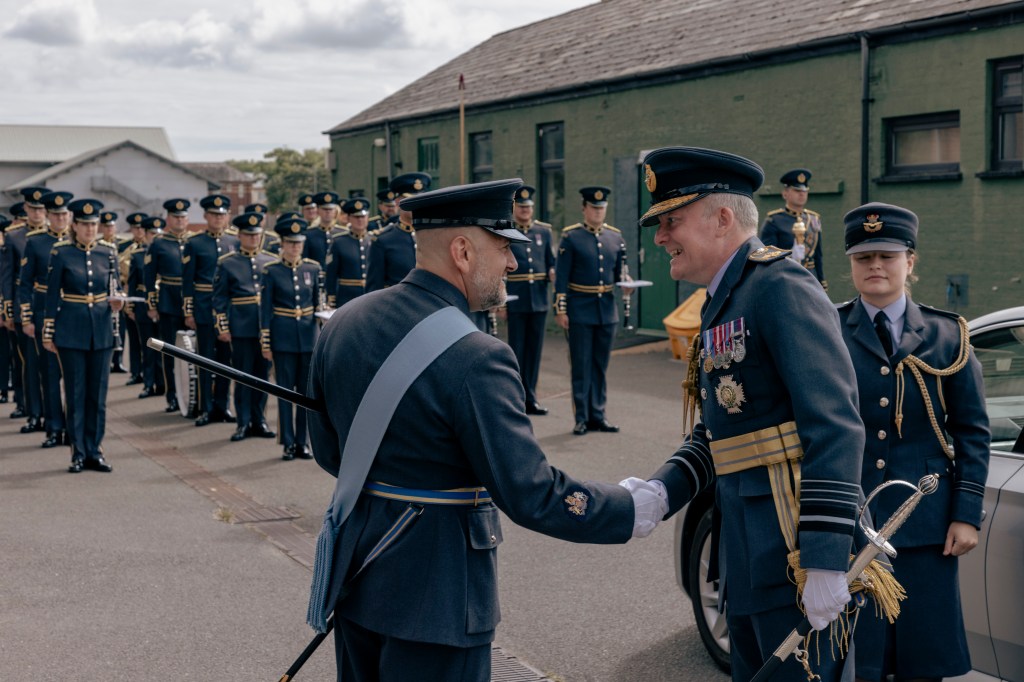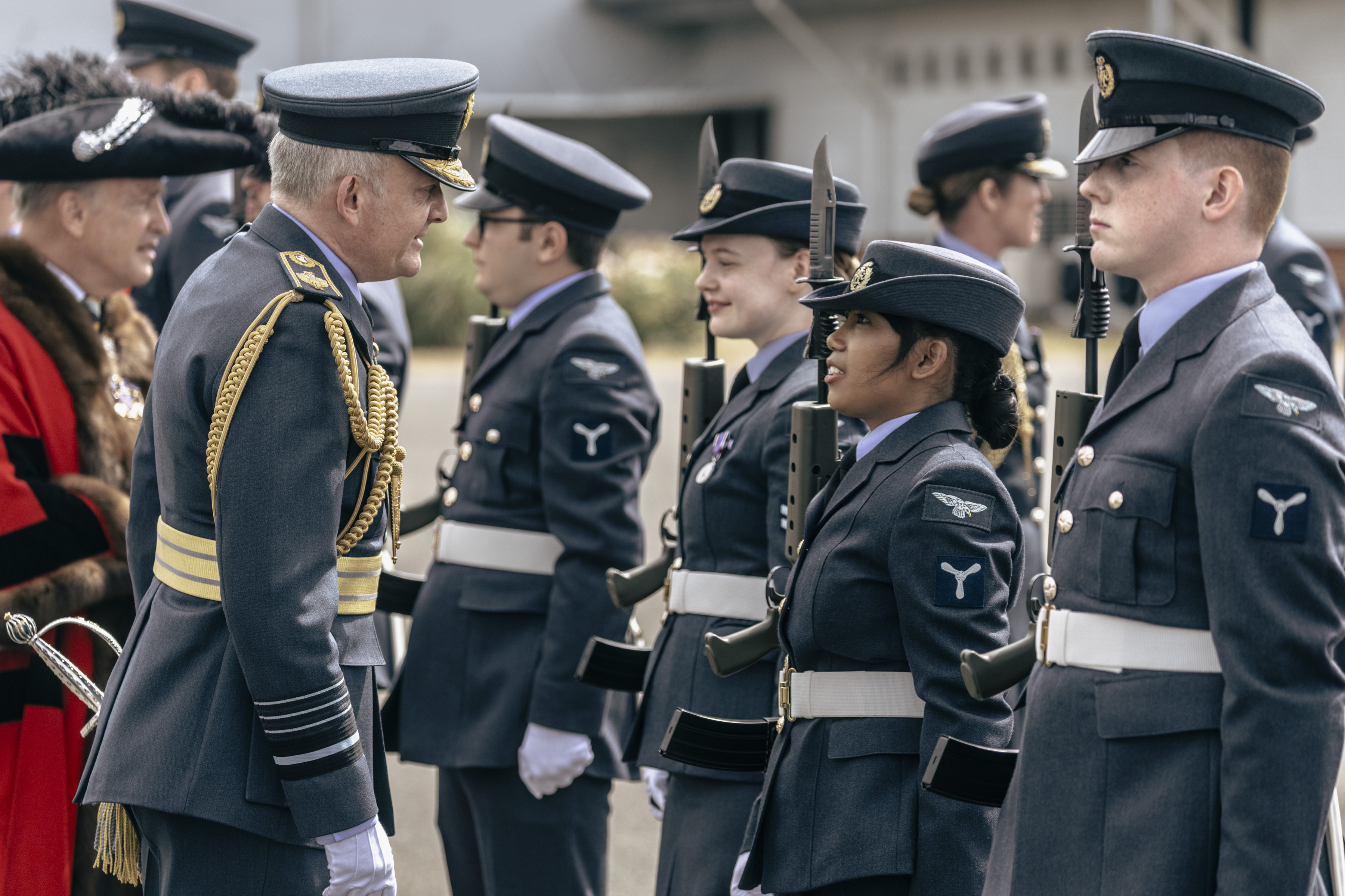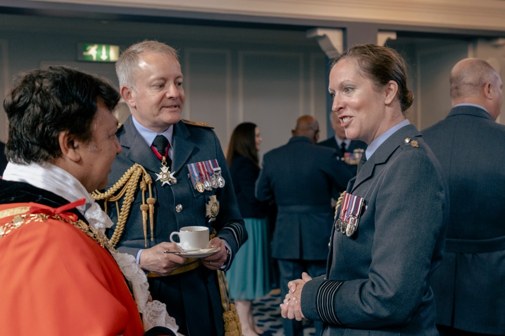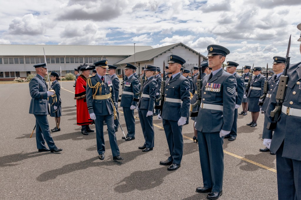 24 June 2023, RAF Northolt – In a parade held at RAF Northolt by 600 (City of London) Squadron, the Representative Lord Mayor of the City of London, Sir Charles Bowman KStJ JP, accompanied by the Chief of the Air Staff, Air Chief Marshall Sir Rich Knighton KCB ADC FREng, has presented a new Royal Auxiliary Air Force Standard to the Squadron.