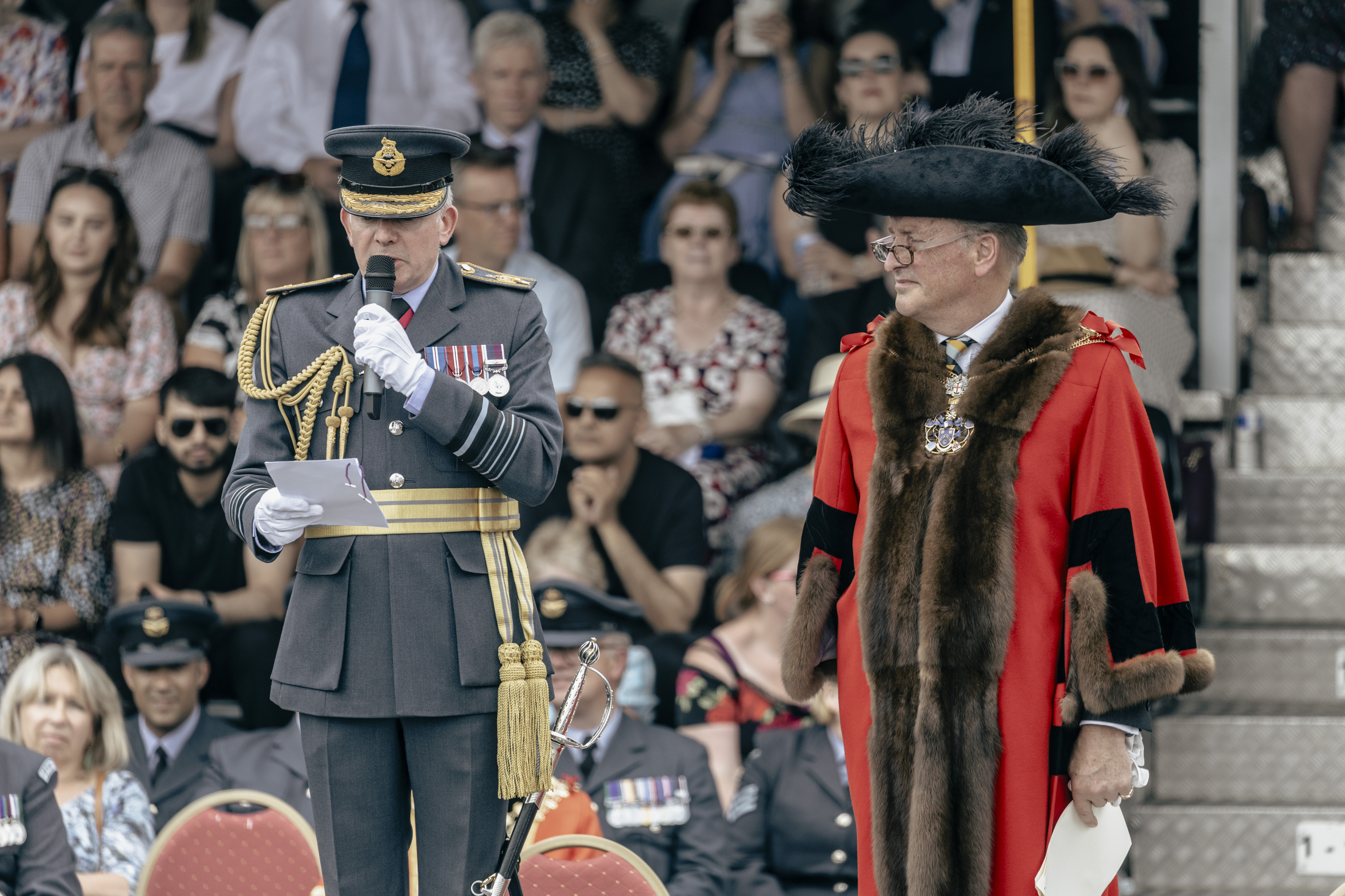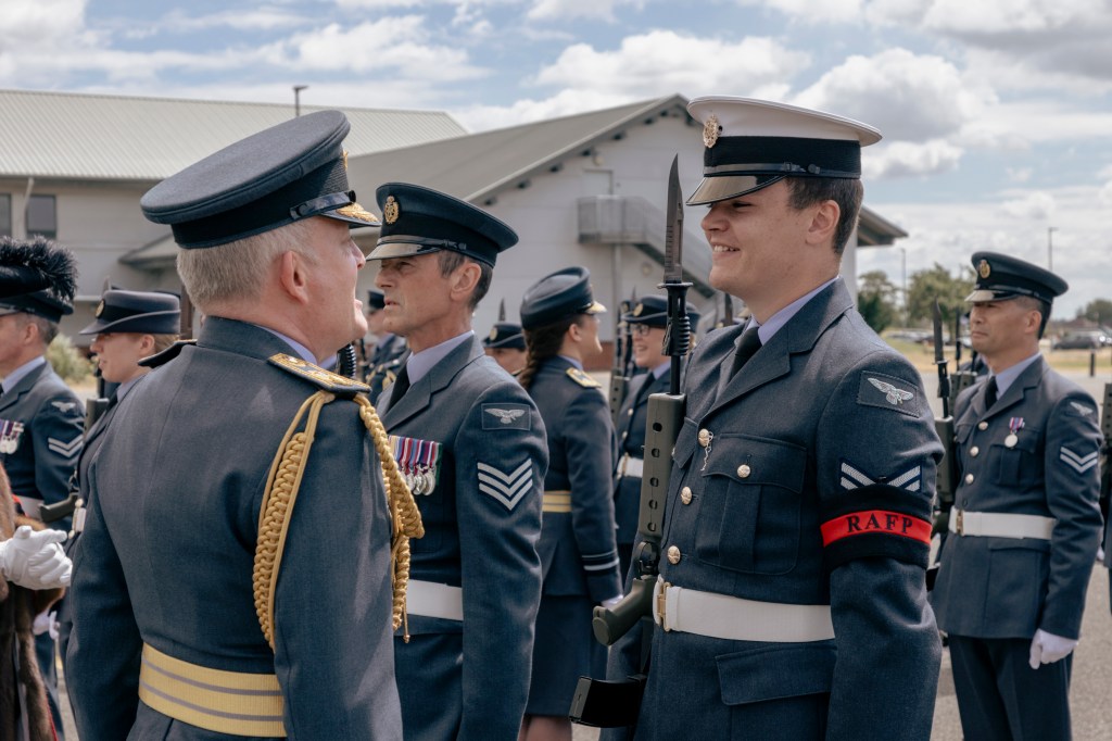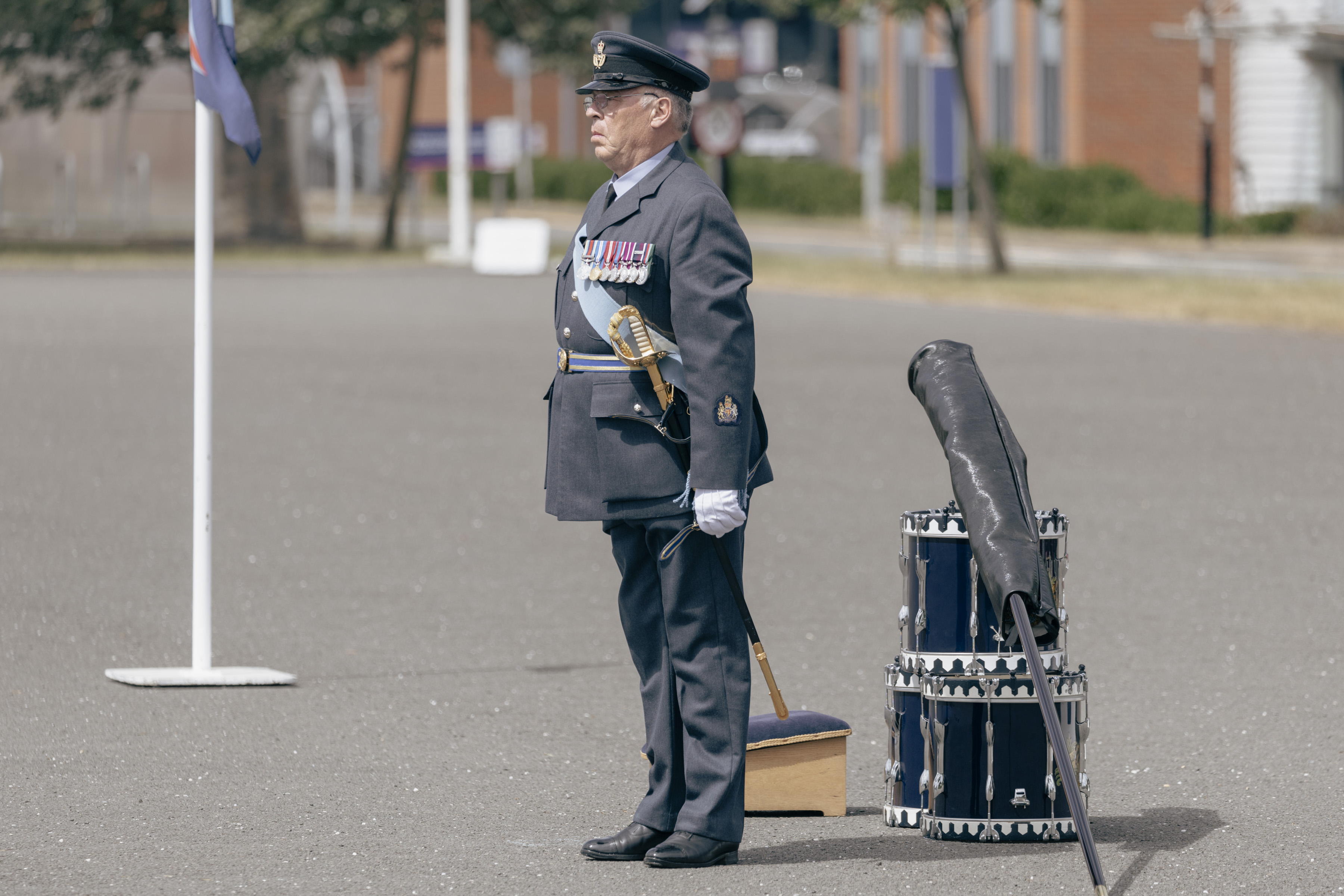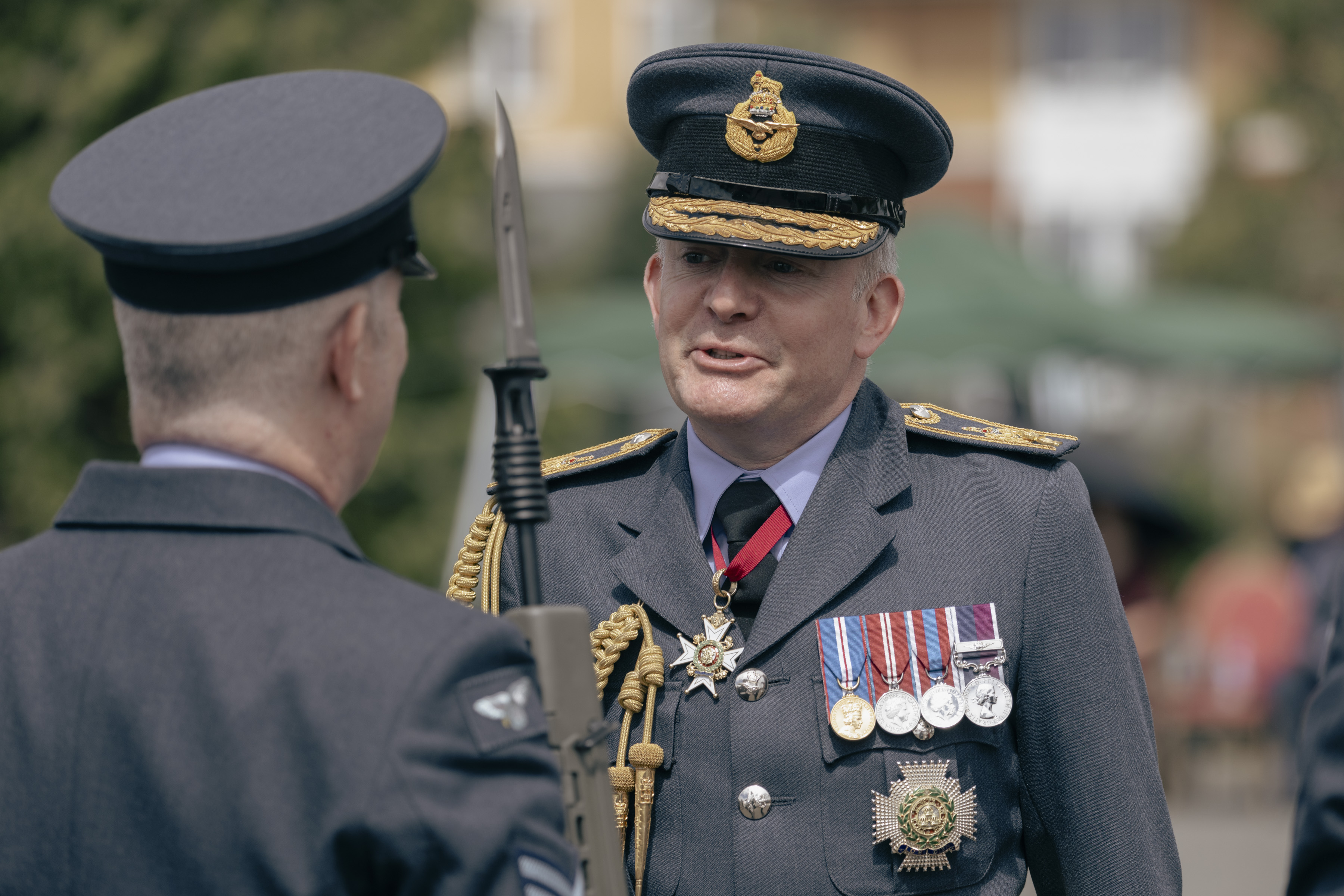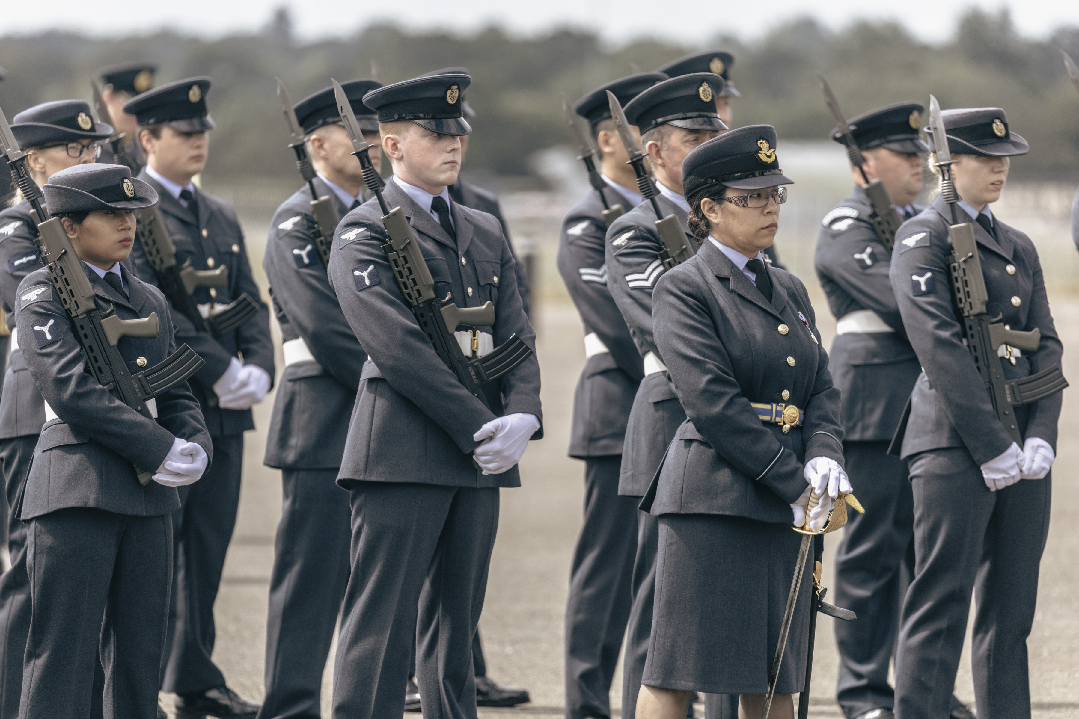 24 June 2023, RAF Northolt – In a parade held at RAF Northolt by 600 (City of London) Squadron, the Representative Lord Mayor of the City of London, Sir Charles Bowman KStJ JP, accompanied by the Chief of the Air Staff, Air Chief Marshall Sir Rich Knighton KCB ADC FREng, has presented a new Royal Auxiliary Air Force Standard to the Squadron.