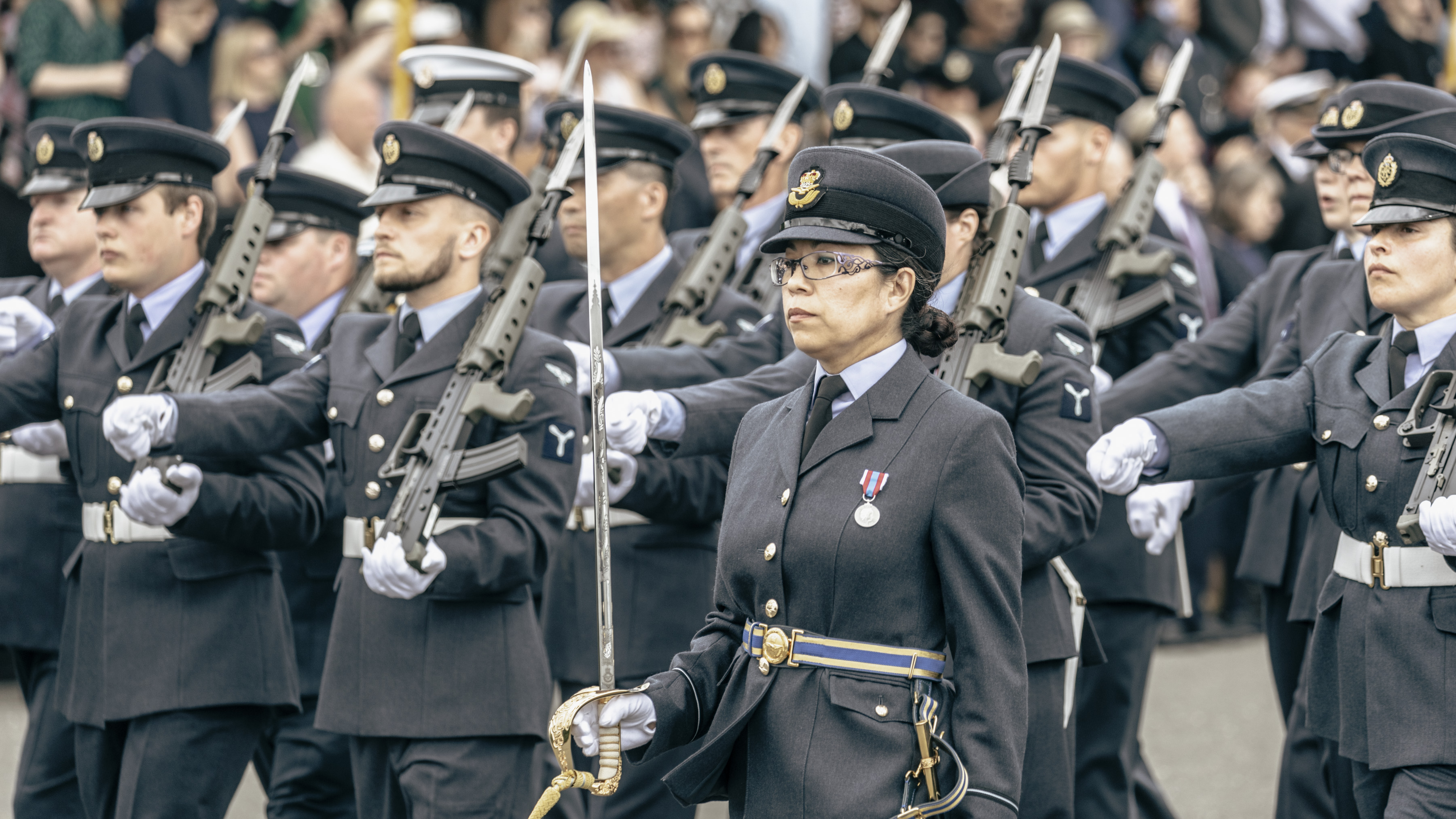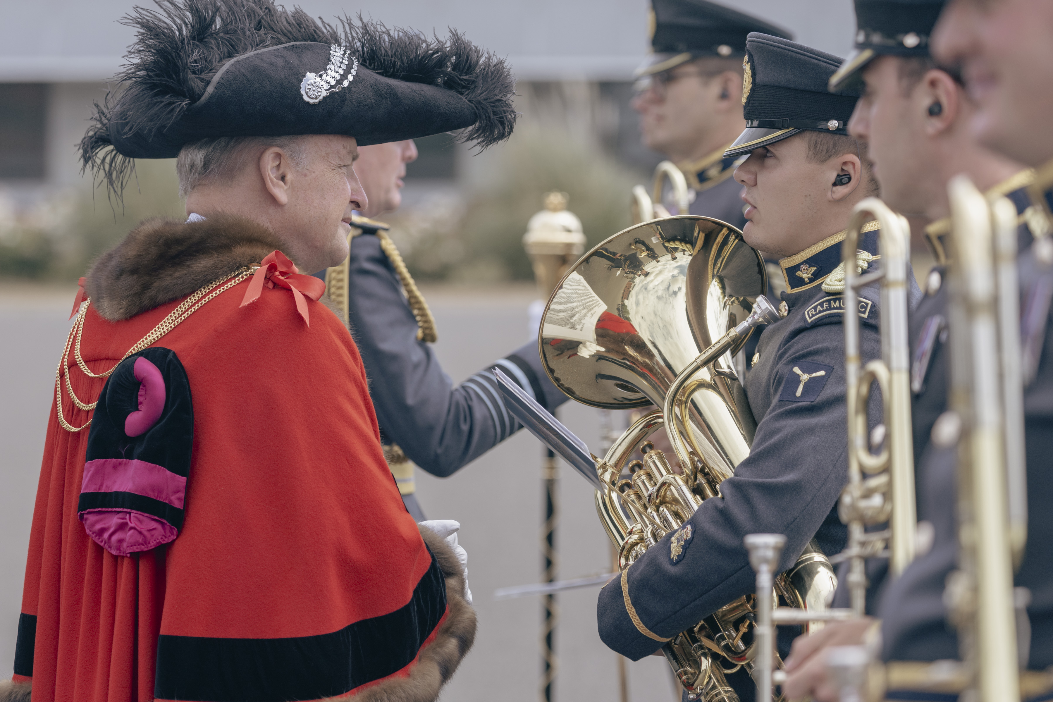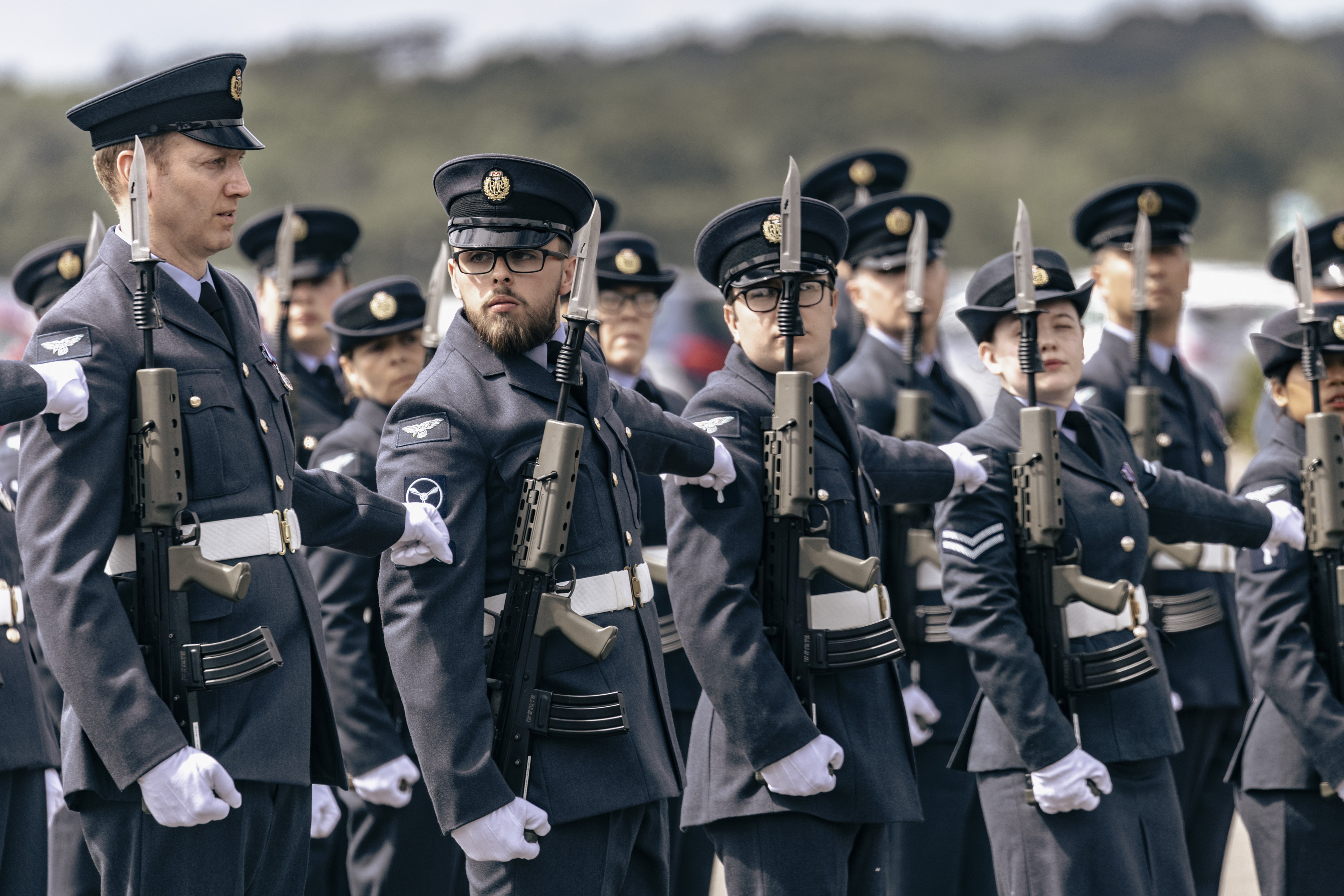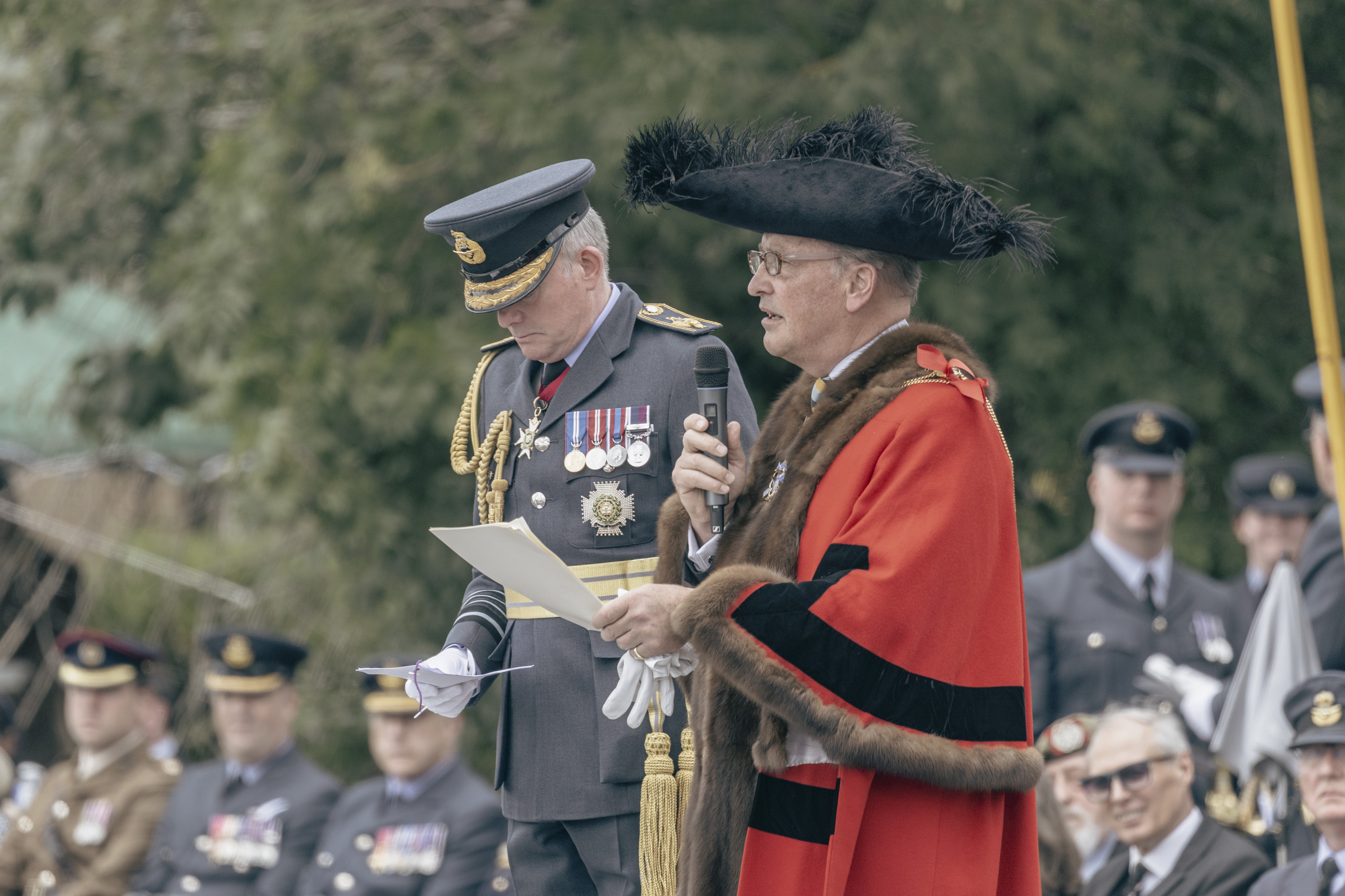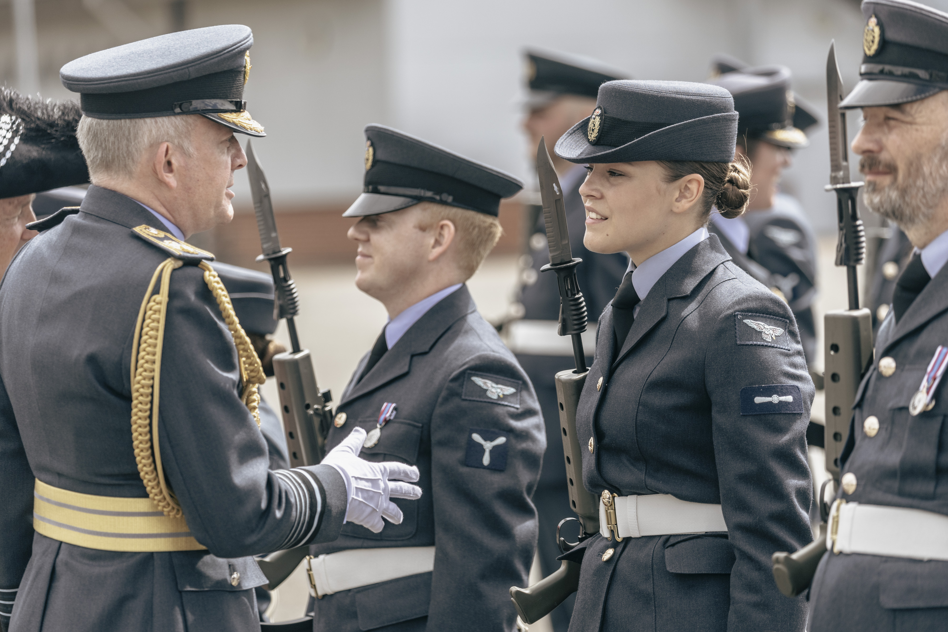 24 June 2023, RAF Northolt – In a parade held at RAF Northolt by 600 (City of London) Squadron, the Representative Lord Mayor of the City of London, Sir Charles Bowman KStJ JP, accompanied by the Chief of the Air Staff, Air Chief Marshall Sir Rich Knighton KCB ADC FREng, has presented a new Royal Auxiliary Air Force Standard to the Squadron.